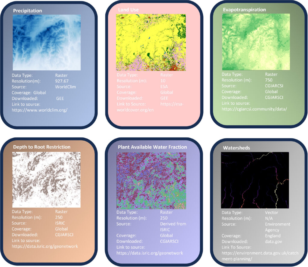 The simulation is conducted using the fantastic InVEST tool (integrated valuation of ecosystem services and trade-off). We employ the Annual Water Yield package to calculate the water yield, relying on globally available datasets outlined below. The majority of these datasets are derived from satellite EO technology. This means, they are accessible worldwide, open source and subject to regular updates, sometimes on the scale of days. Access to these data is possible through various platforms, and for our study, we utilized Google Earth Engine (GEE) as the means to access them.